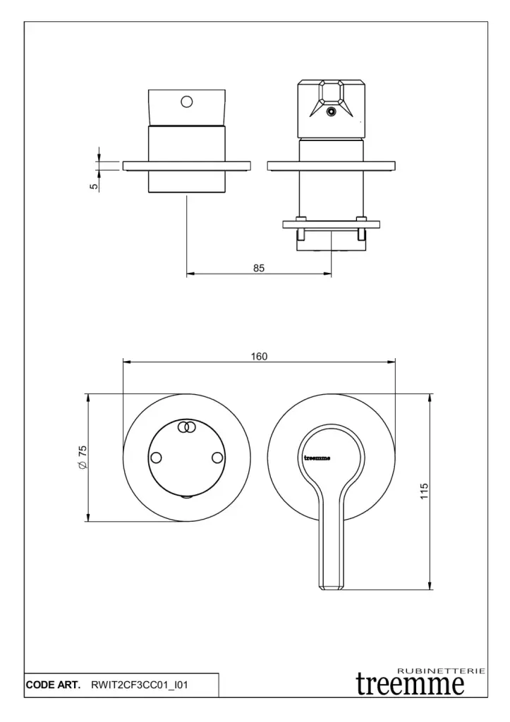 Treemme Aurelia Смеситель для душа встраиваемый, 3 потребителя, внешняя часть, цвет: chrome RWIT2CF3CC01