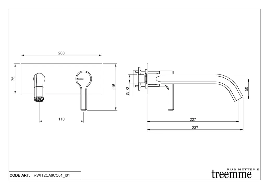 Treemme Aurelia Смеситель для раковины встраиваемый, внешняя часть, излив 19 см, цвет: chrome RWIT2CC5CC01