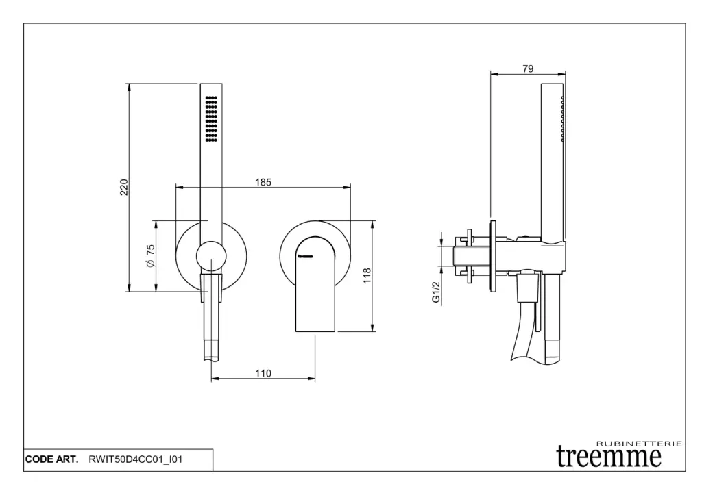 Treemme Bamboo Душевой гарнитур: душевая лейка 1 вид струи, держатель, шланг, цвет: chrome RWIT50D4CC01