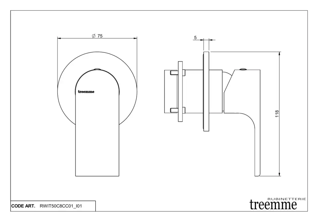 Treemme Bamboo Смеситель для душа встраиваемый, 1 потребитель, внешняя часть, цвет: chrome RWIT50C8CC01