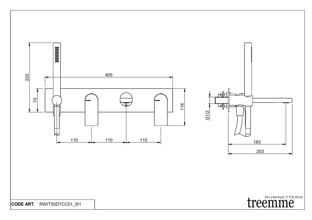 Treemme Bamboo Смеситель для душа встраиваемый, 2 потребителя, внешняя часть, цвет: chrome RWIT50D7CC01