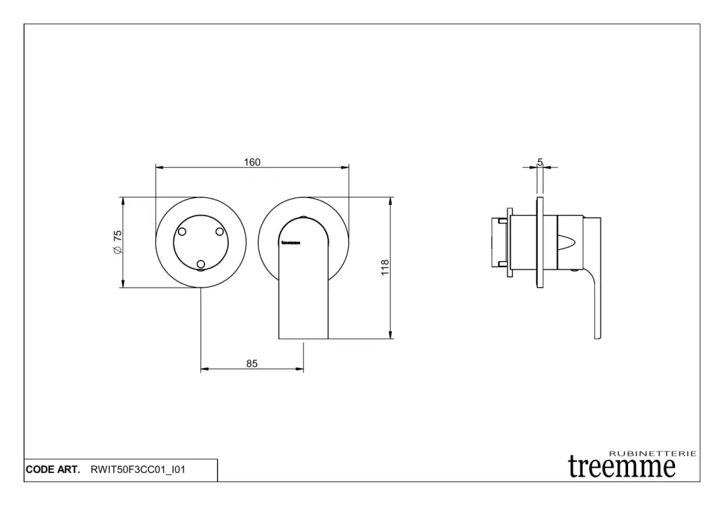 Treemme Bamboo Смеситель для душа встраиваемый, 3 потребителя, внешняя часть, цвет: chrome RWIT50F3CC01