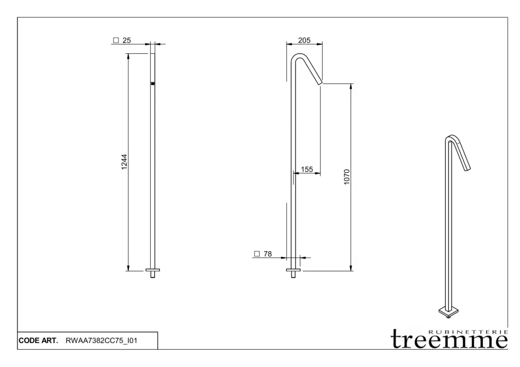 Treemme Electronic Tap Высокий излив для раковины напольный 124 см, цвет: chrome RWAA7382CC75