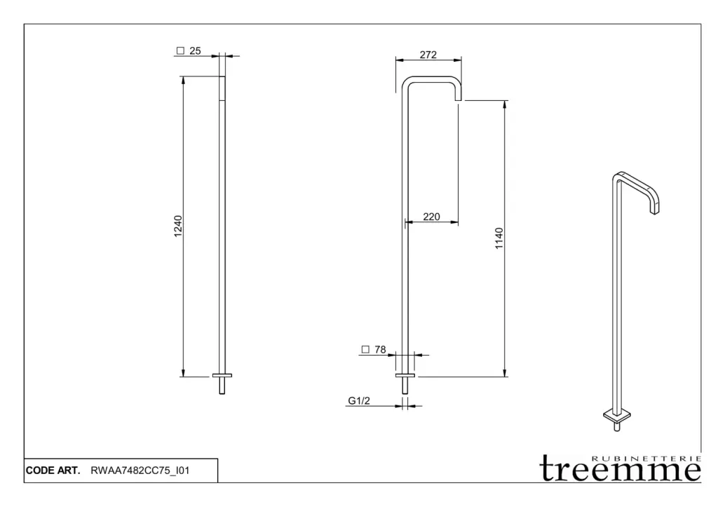 Treemme Electronic Tap Высокий излив для раковины напольный 124 см, цвет: chrome RWAA7482CC75