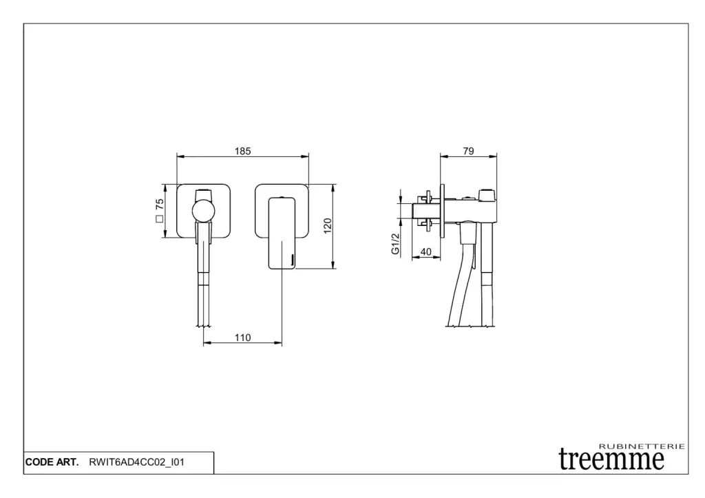 Treemme Hask Смеситель для раковины, встраиваемый, излив 18,3 см, цвет: хром RWIT6AC5CC03