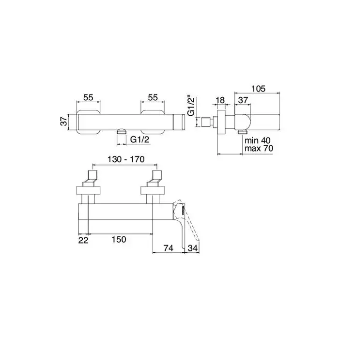 Treemme Hask Смеситель для раковины, встраиваемый, излив 18 см, цвет: черный матовый RWIT6AA5NN03