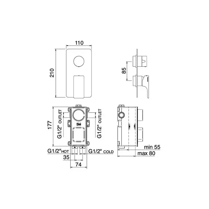 Treemme Hask Смеситель для душа с перекл. на три потока, встраив., цвет: черный матовый RWIT6AA3NN01