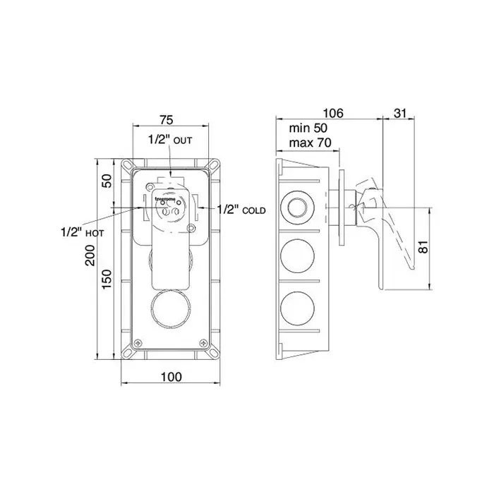 Treemme Hask Внутренняя часть встраиваемого смесителя для раковины на 1 отверстие RWIT6A08CC70