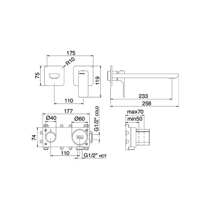 Treemme Hask Смеситель для раковины, встраиваемый, излив 18,3 см, цвет: хром RWIT6AC5CC03