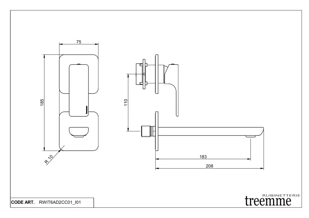 Treemme Hask Смеситель для раковины, встраиваемый, излив 18,3 см, цвет: хром RWIT6AC5CC03