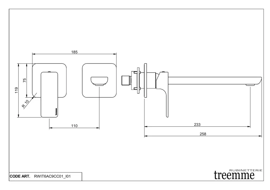 Treemme Hask Смеситель для раковины, встраиваемый, излив 18,3 см, цвет: хром RWIT6AC5CC03