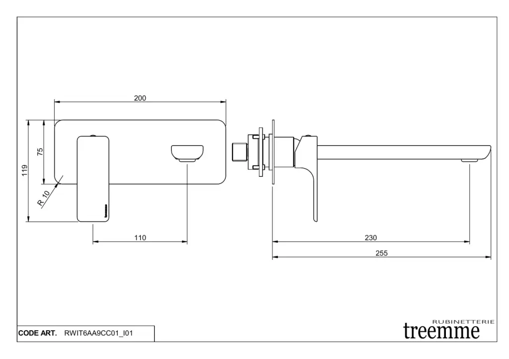 Treemme Hask Смеситель для раковины, встраиваемый, излив 18 см, цвет: хром RWIT6AA5CC03