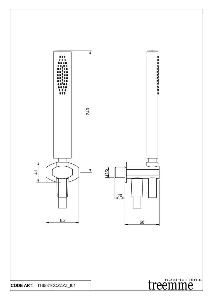 Treemme Hedo Душевой гарнитур: душевая лейка 1 вид струи, держатель, шланг, цвет: chrome IT6531CCZZZZ