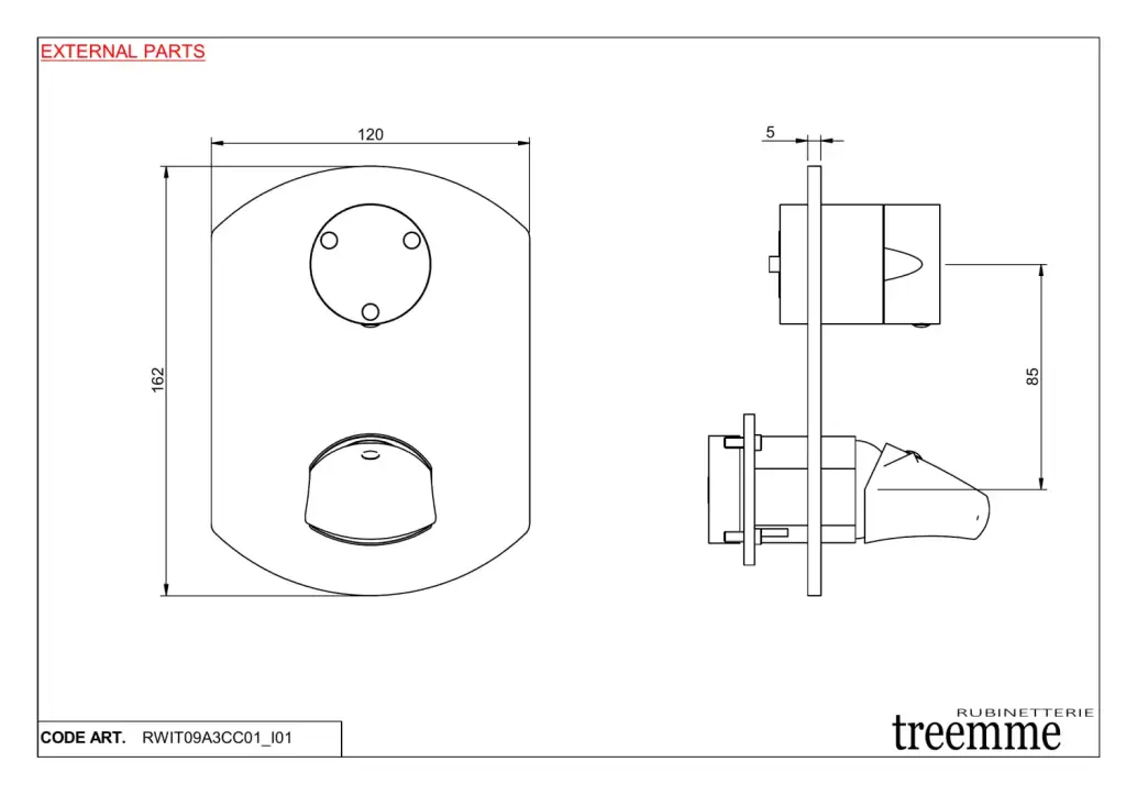 Treemme Hedo Смеситель для душа встраиваемый, 2 потребителя, внешняя часть, цвет: chrome RWIT09A3CC01