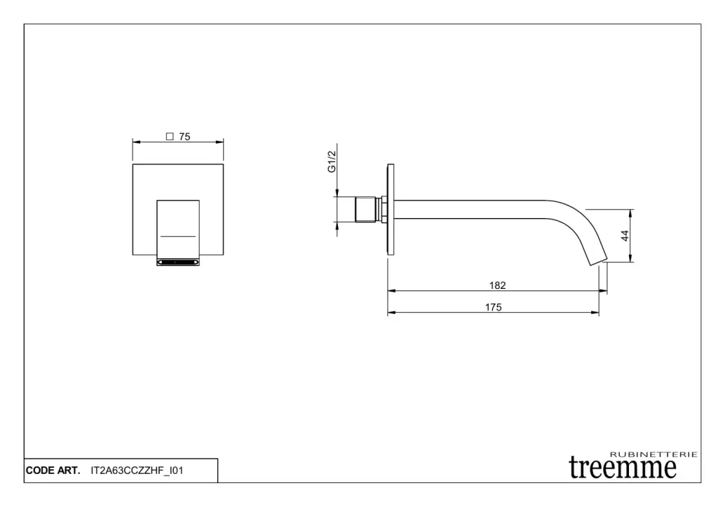 Treemme Ios Излив настенный для ванны 18,2 см, цвет: chrome IT2A63CCZZHF