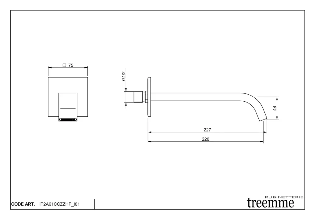 Treemme Ios Излив настенный для ванны 22,7 см, цвет: chrome IT2A61CCZZHF