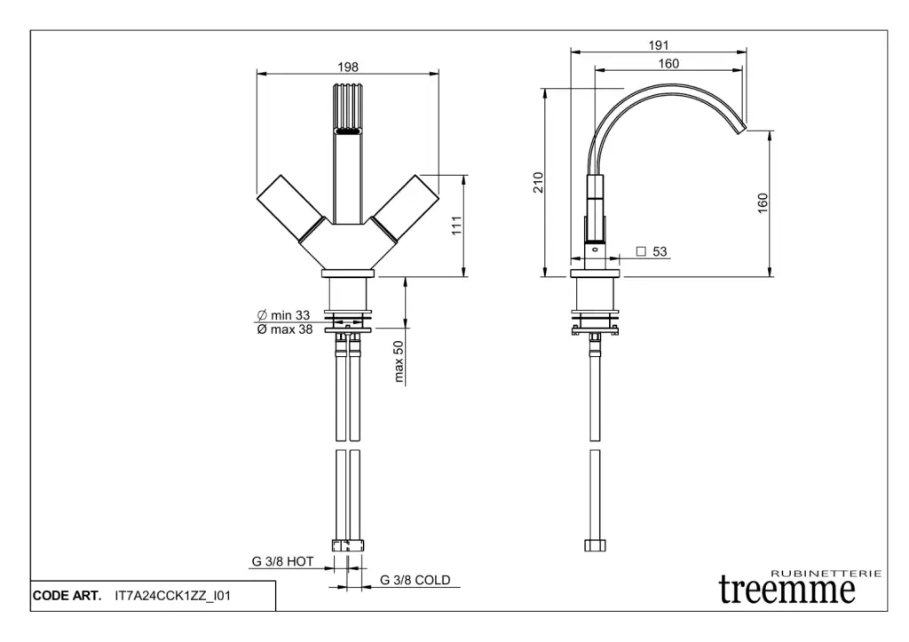 Treemme Kea Внутренняя часть встраиваемого смесителя для раковины на 3 отверстия RWIT7A52ZZ02