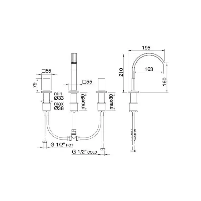 Treemme Kea Внутренняя часть встраиваемого смесителя для раковины на 3 отверстия RWIT7A60ZZ02