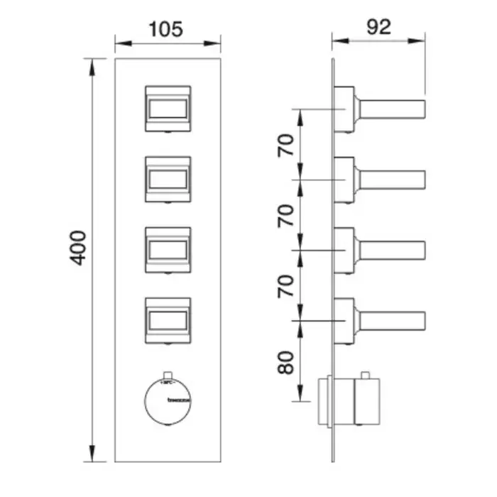 Treemme Kea Смеситель для душа, термостат, встраиваемый, на 2 потока, цвет: хром RWIT7AD5CC01