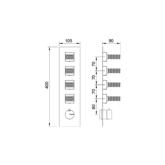 Treemme Kea Смеситель для душа, термостат, встраиваемый, на 2 потока, цвет: хром RWIT7AD5CC01