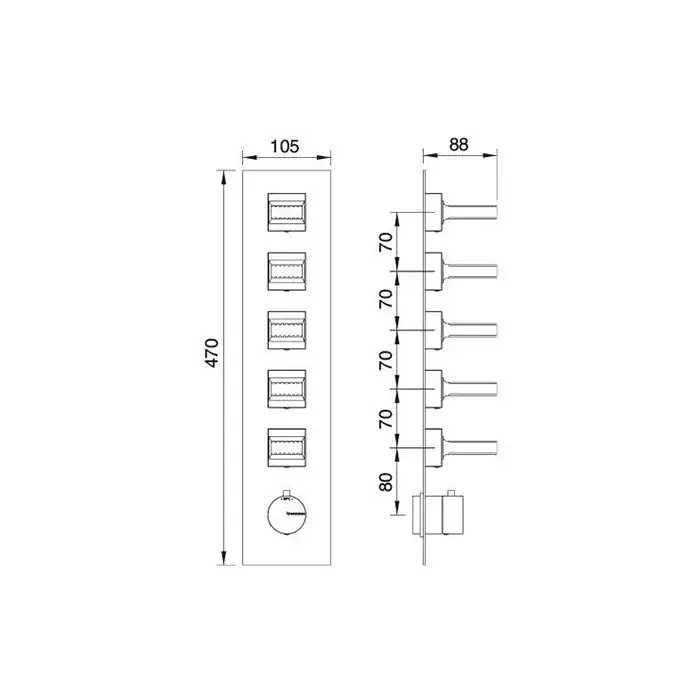 Treemme Kea Смеситель для душа, термостат, встраиваемый, на 5 потоков, цвет: хром RWIT7A98CCKO
