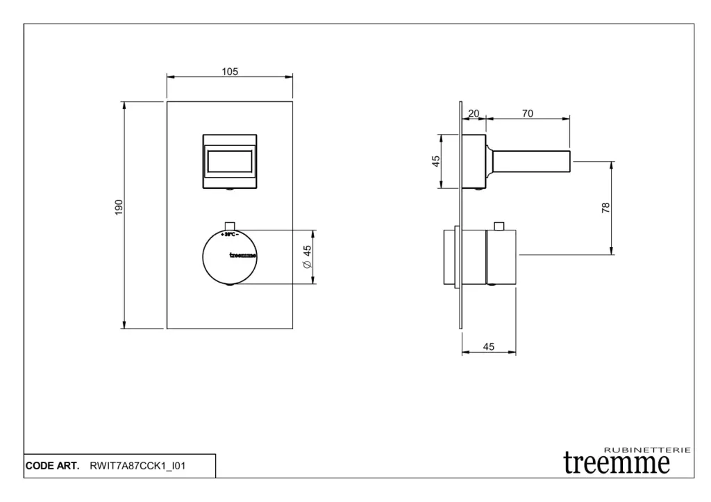 Treemme Kea Смеситель для душа, термостат, встраиваемый, на 1 поток, цвет: хром RWIT7A87CCRO