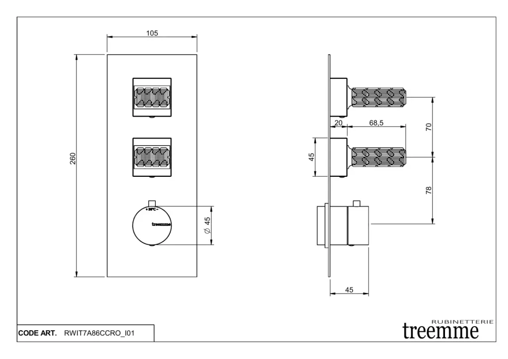 Treemme Kea Смеситель для душа, термостат, встраиваемый, на 2 потока, цвет: хром RWIT7AD5CC01