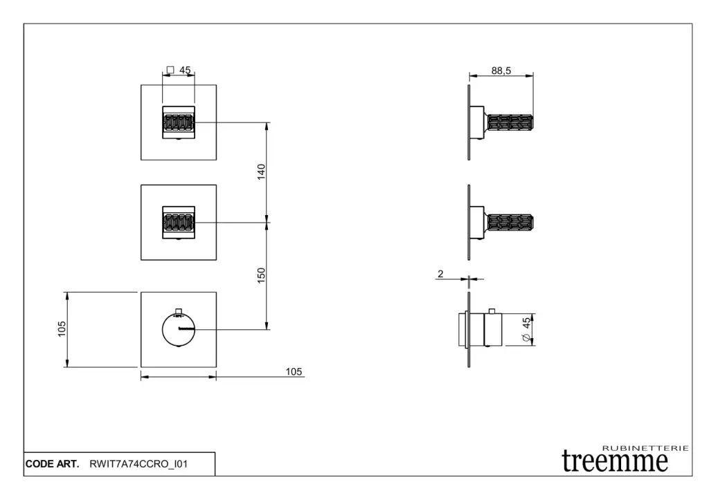 Treemme Kea Смеситель для душа, термостат, встраиваемый, на 2 потока, цвет: хром RWIT7AD5CC01