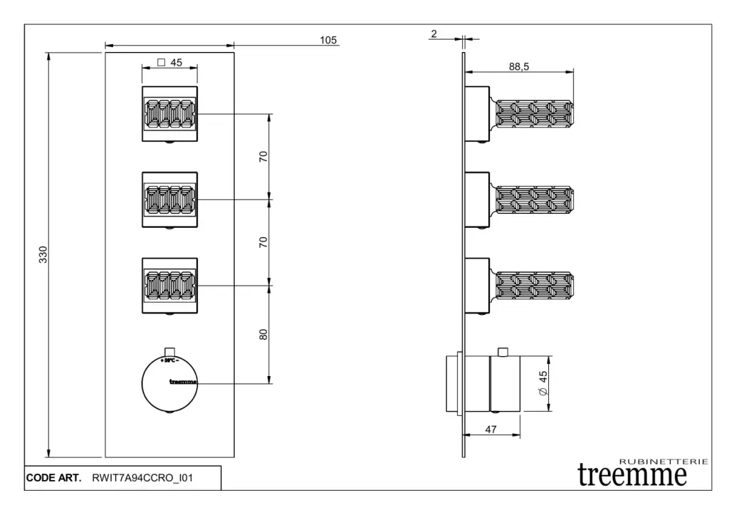Treemme Kea Смеситель для душа, термостат, встраиваемый, на 2 потока, цвет: хром RWIT7AD5CC01