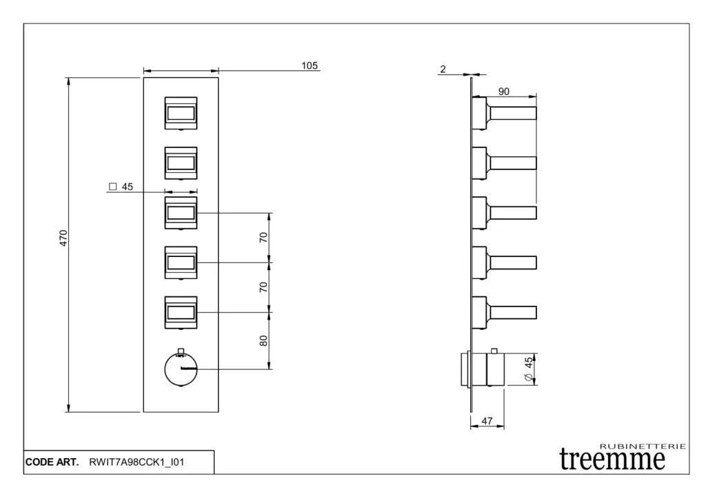 Treemme Kea Смеситель для душа термостатический встраиваемый, 5 потреб., внешняя часть, цвет: chrome RWIT7A98CCK_