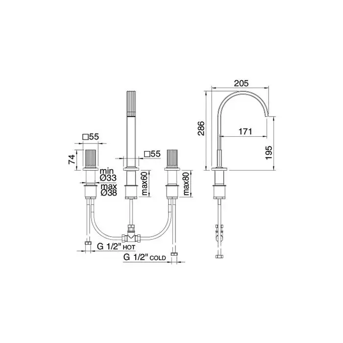 Treemme Kea Внутренняя часть встраиваемого смесителя для раковины на 3 отверстия RWIT7A52ZZ02