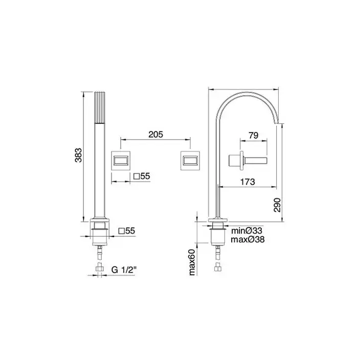 Treemme Kea Внутренняя часть встраиваемого смесителя для раковины на 3 отверстия RWIT7A60ZZ02