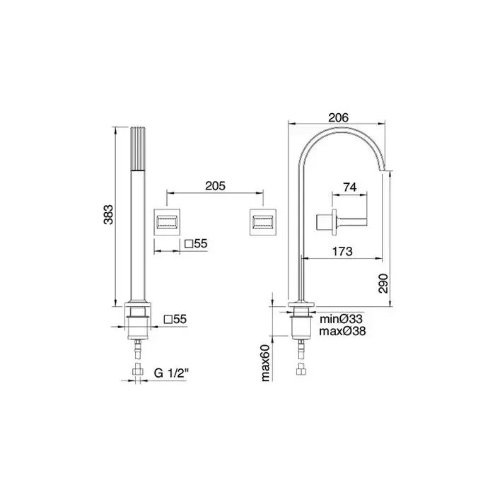 Treemme Kea Внутренняя часть встраиваемого смесителя для раковины на 3 отверстия RWIT7A60ZZ02