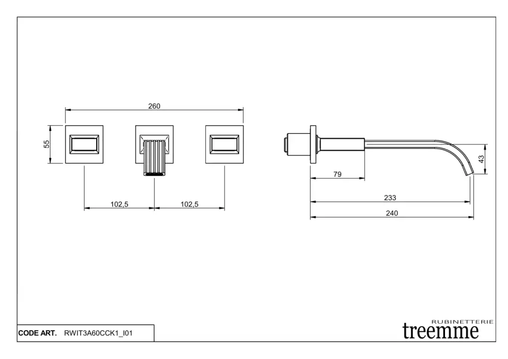 Treemme Kea Внутренняя часть встраиваемого смесителя для раковины на 3 отверстия RWIT7A52ZZ02