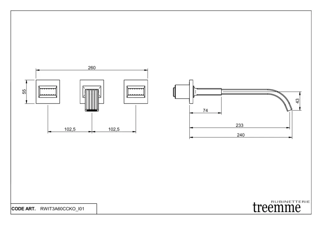 Treemme Kea Внутренняя часть встраиваемого смесителя для раковины на 3 отверстия RWIT7A52ZZ02