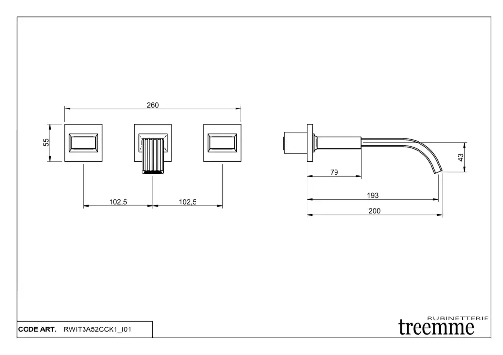 Treemme Kea Внутренняя часть встраиваемого смесителя для раковины на 3 отверстия RWIT7A52ZZ02