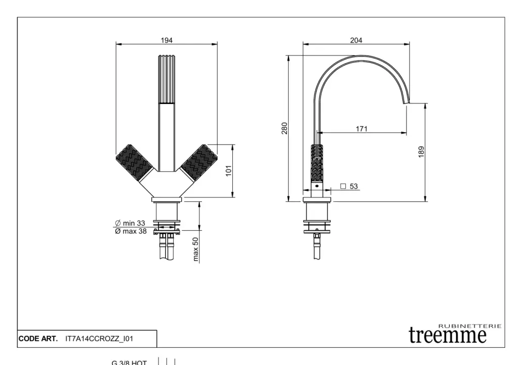 Treemme Kea Внутренняя часть встраиваемого смесителя для раковины на 3 отверстия RWIT7A52ZZ02