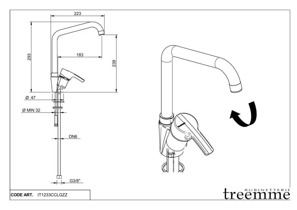 Treemme Kitchen S Смеситель для кухни без выдвижного излива, цвет: chrome IT1233CCLGZZ