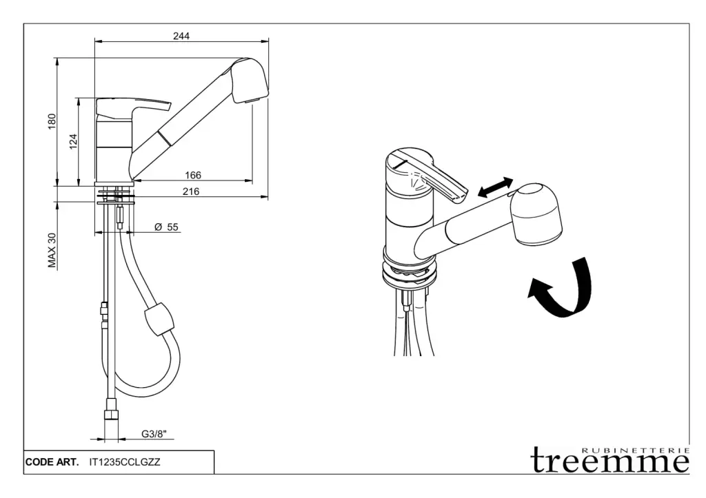 Treemme Kitchen S Смеситель для кухни с выдвижным изливом, цвет: chrome IT1235CCLGZZ