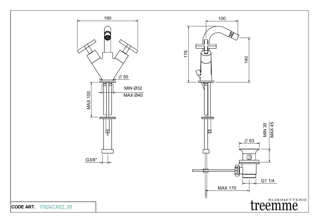 Treemme Line Смеситель для биде, с донным клапаном, цвет: chrome IT1024CCXVZZ
