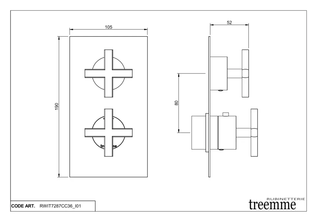 Treemme Line Смеситель для душа термостатический, 1 потребитель, внешняя часть, цвет: chrome RWIT7287CC36