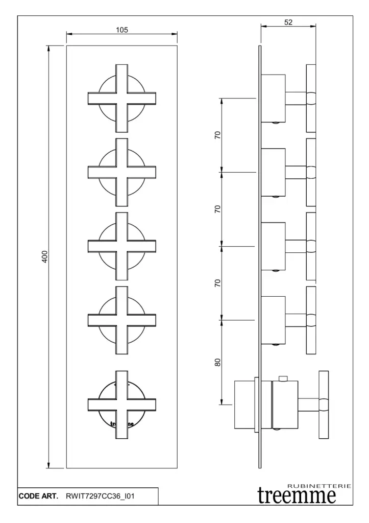 Treemme Line Смеситель для душа термостатический встраиваемый, 4 потреб., внешняя часть, цвет:chrome RWIT7297CC36