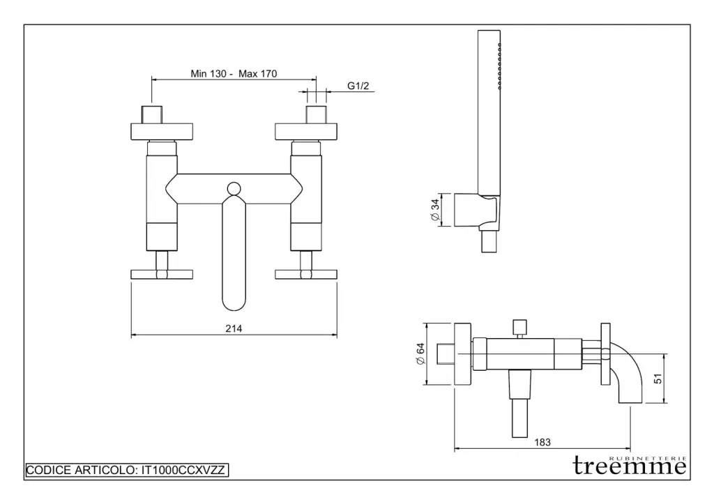 Treemme Line Смеситель для ванны накладной с ручным душем, 1 вид струи, цвет: chrome IT1000CCXVZZ