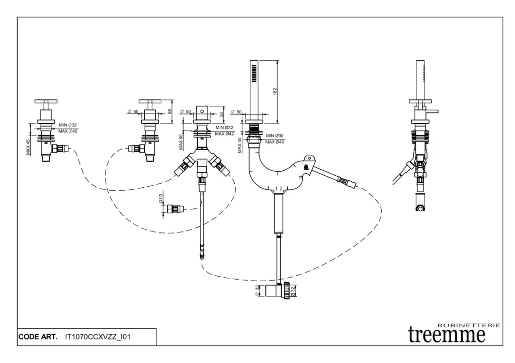 Treemme Line Смеситель на борт ванны на 5 отверстий, с ручным душем, внешняя часть, цвет: chrome IT1070CCXVZZ