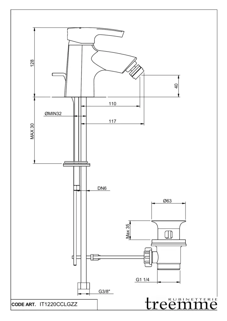 Treemme Logic Смеситель для биде, с донным клапаном, цвет: chrome IT1220CCLGZZ