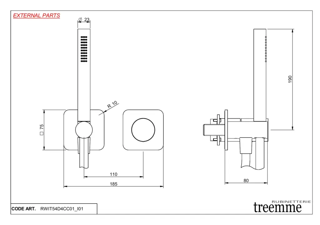 Treemme Nanotech Смеситель для душа встраиваемый, 1 потребитель, внешняя часть, цвет: chrome RWIT54D4CC01