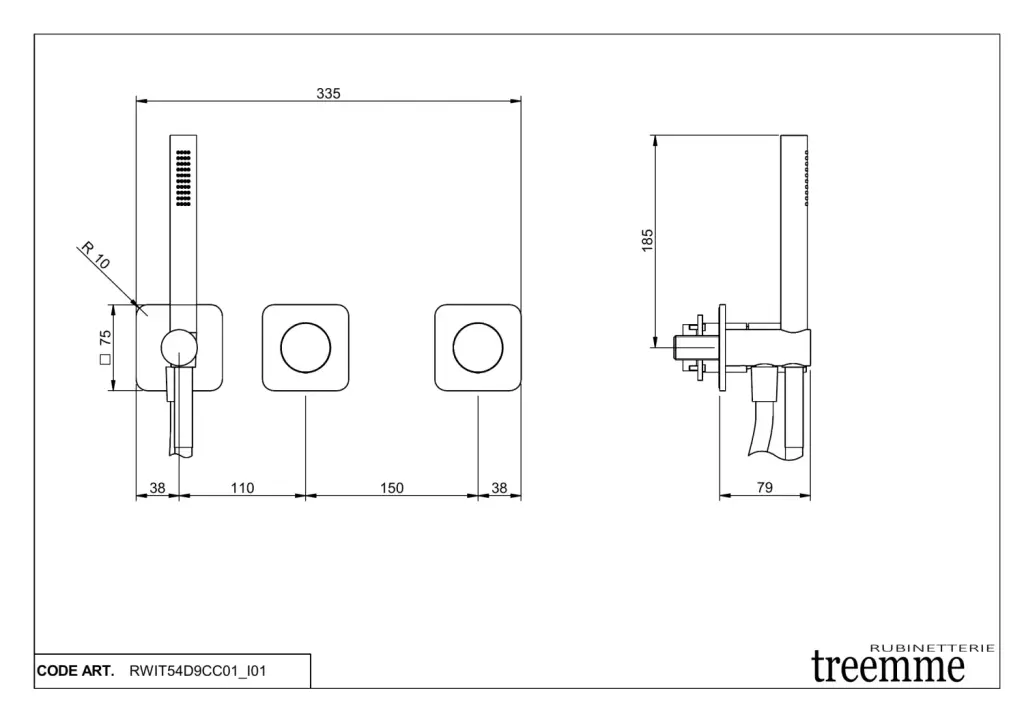 Treemme Nanotech Смеситель для душа встраиваемый, 2 потребителя, внешняя часть, цвет: chrome RWIT54D9CC01