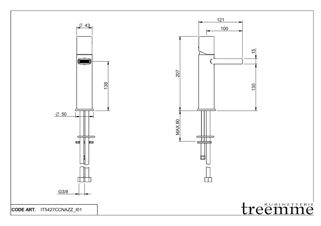 Treemme Nanotech Смеситель для раковины высокий, без д/к, высота излива 22,7 см, цвет: chrome IT5418CCNAZZ