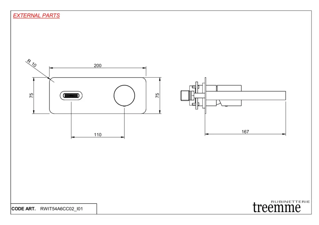 Treemme Nanotech Смеситель для раковины встраиваемый, внешняя часть, излив 13,5 см, цвет: chrome RWIT54C5CC02