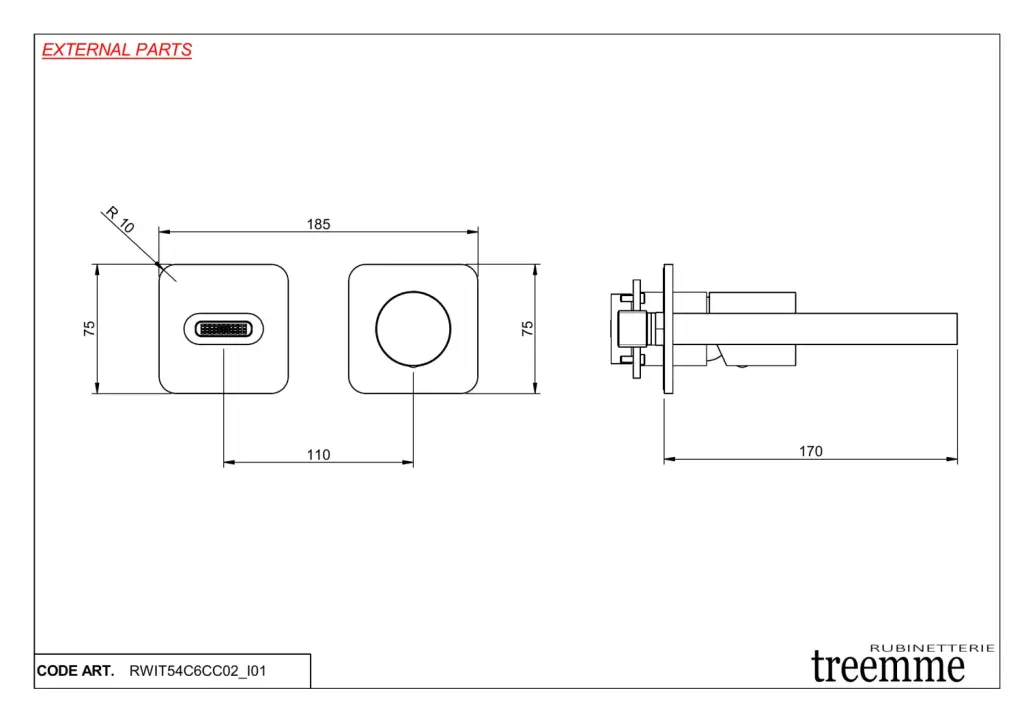 Treemme Nanotech Смеситель для раковины встраиваемый, внешняя часть, излив 17 см, цвет: chrome RWIT54C6CC02